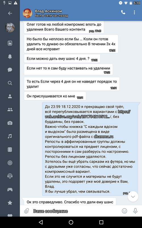 Короче Шашков доказал, что он безнравственный человек, копирующий чужие тексты, и не возращающий чужие тексты, даже когда просят, а это уже потягивает на воровство, и неисполнеяемые обещания, которые видимо он и не планировал исполнять, потягивают на ложь. И такие люди называют себя буддистами... Вот реально Будда говорил, только за долгое время можно узнать о человеке кто он есть на самом деле. Я с ним ещё до монашества общался давно встречались с ним ходили вместе в Тамбове и Воронеже, но теперь понимаю, кто он есть. Видимо все что про него бывшая писала кстати массово разным буддистам правда также. Вообщем я в очередной раз рад что разорвал отношения с этой старцевадой.